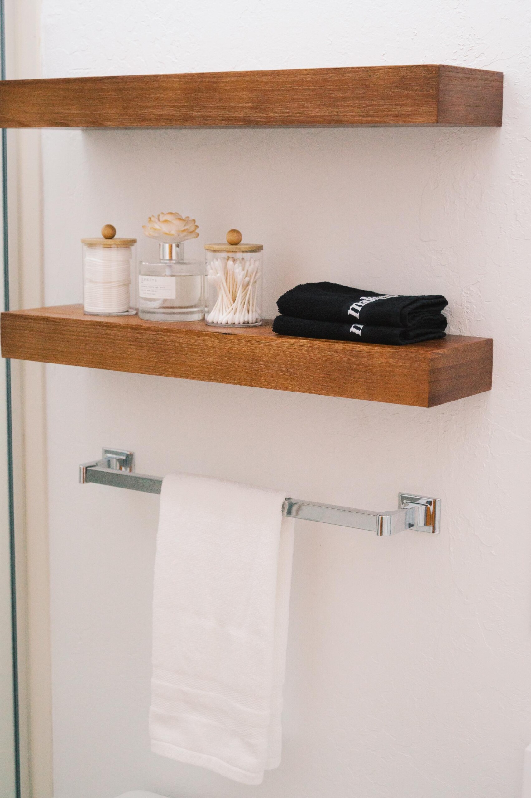 Two full bathrooms feature walk-in showers, plush towels, and makeup towels for added convenience.