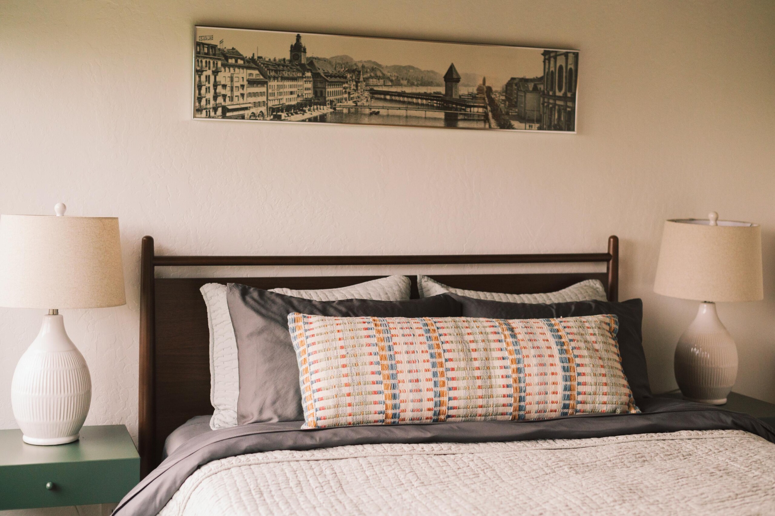 The primary suite features a King Casper mattress, Quince bamboo sheets, light-darkening shades, and a desk for remote work. Thoughtful touches ensure a restful and comfortable stay.