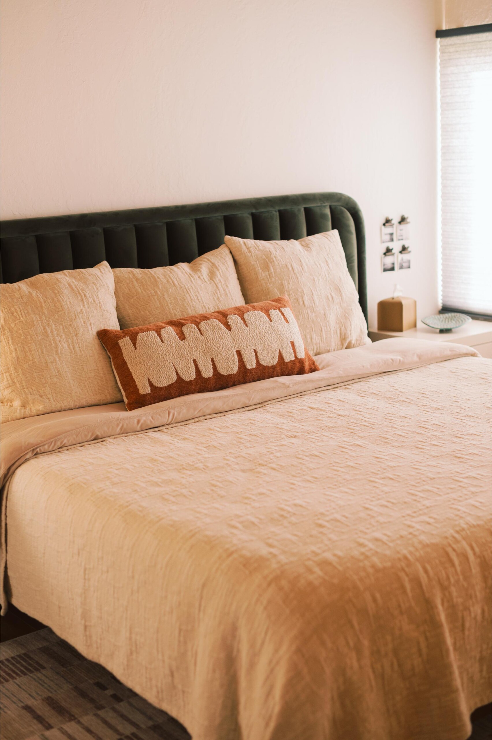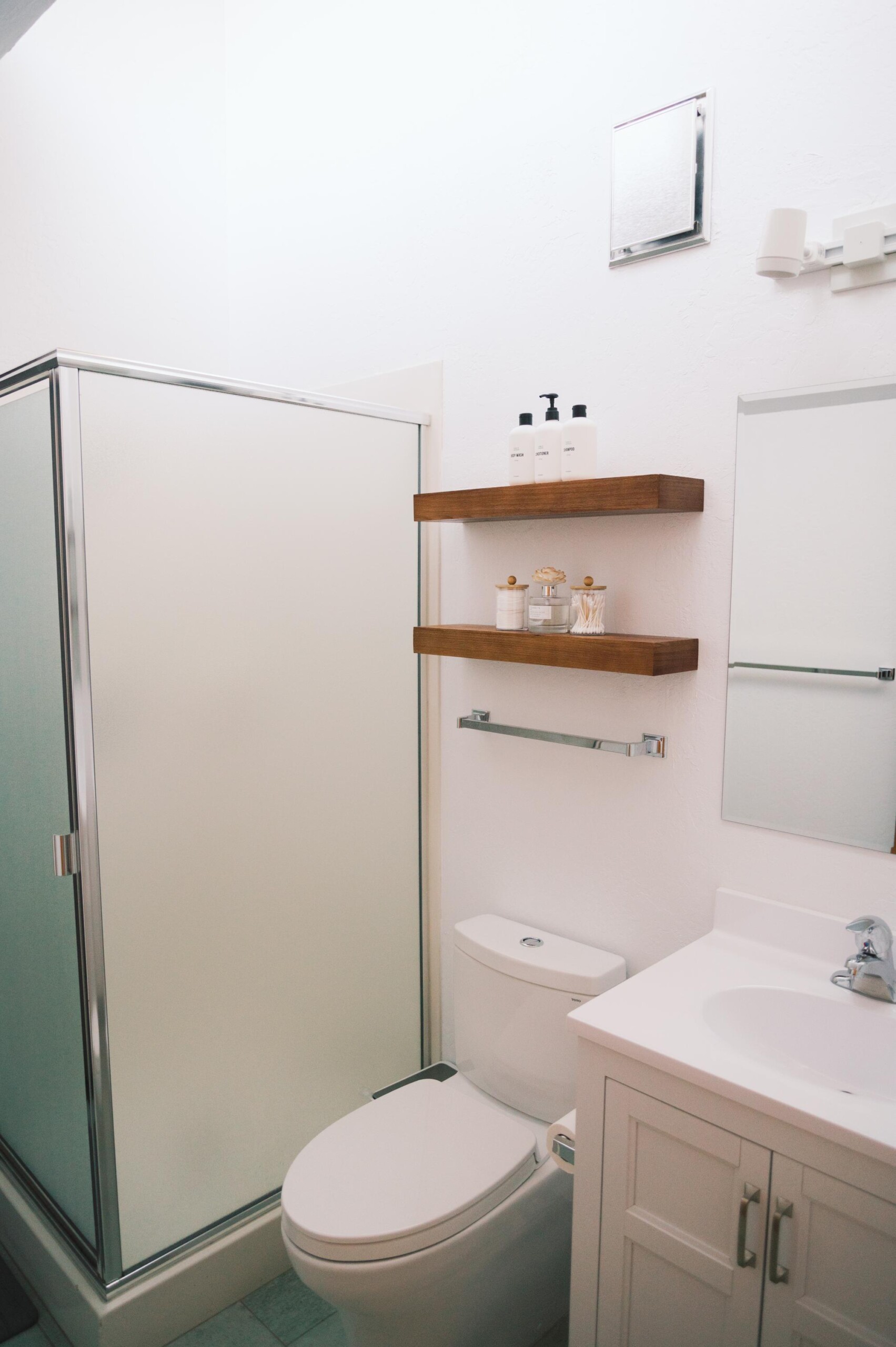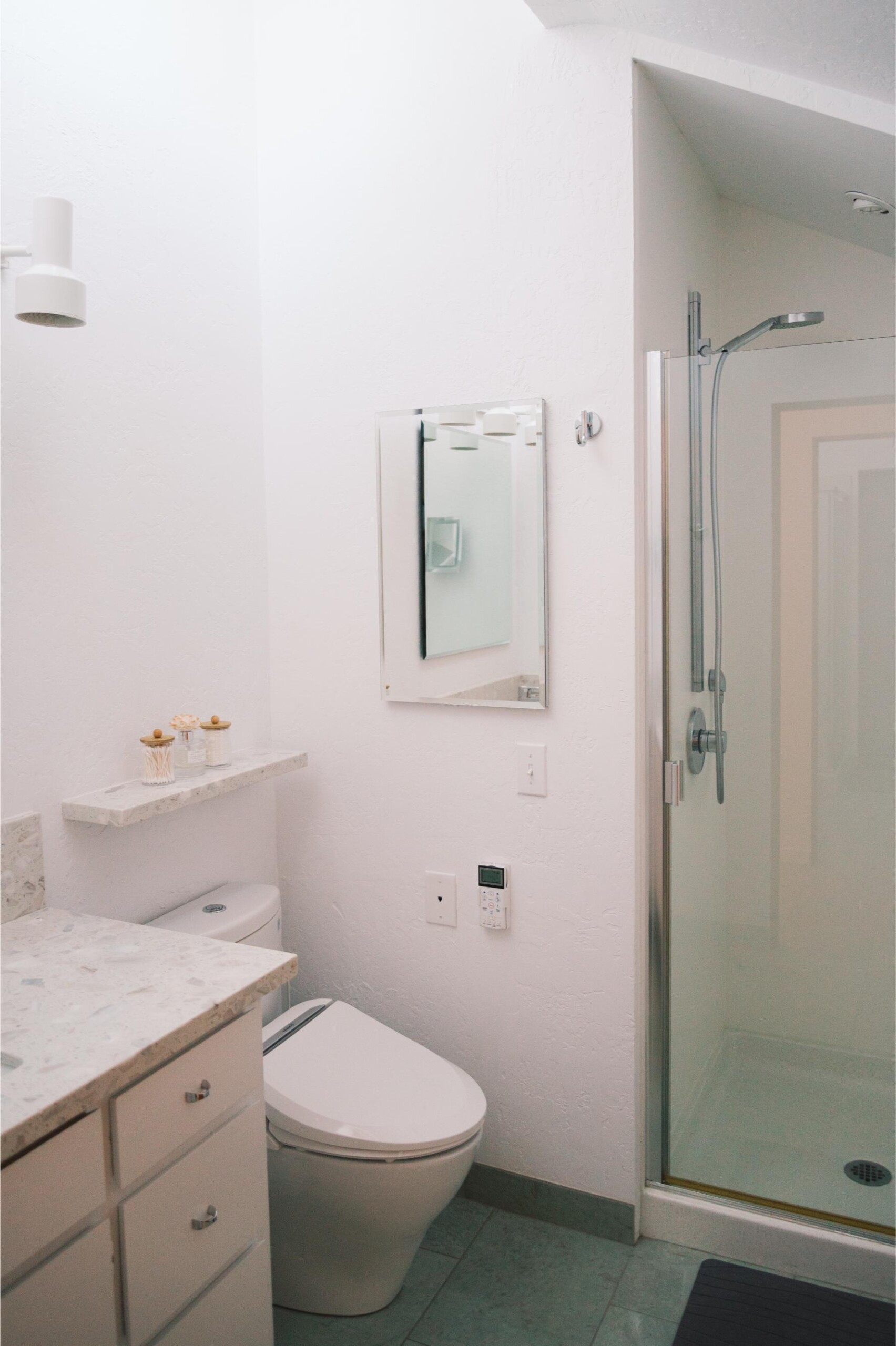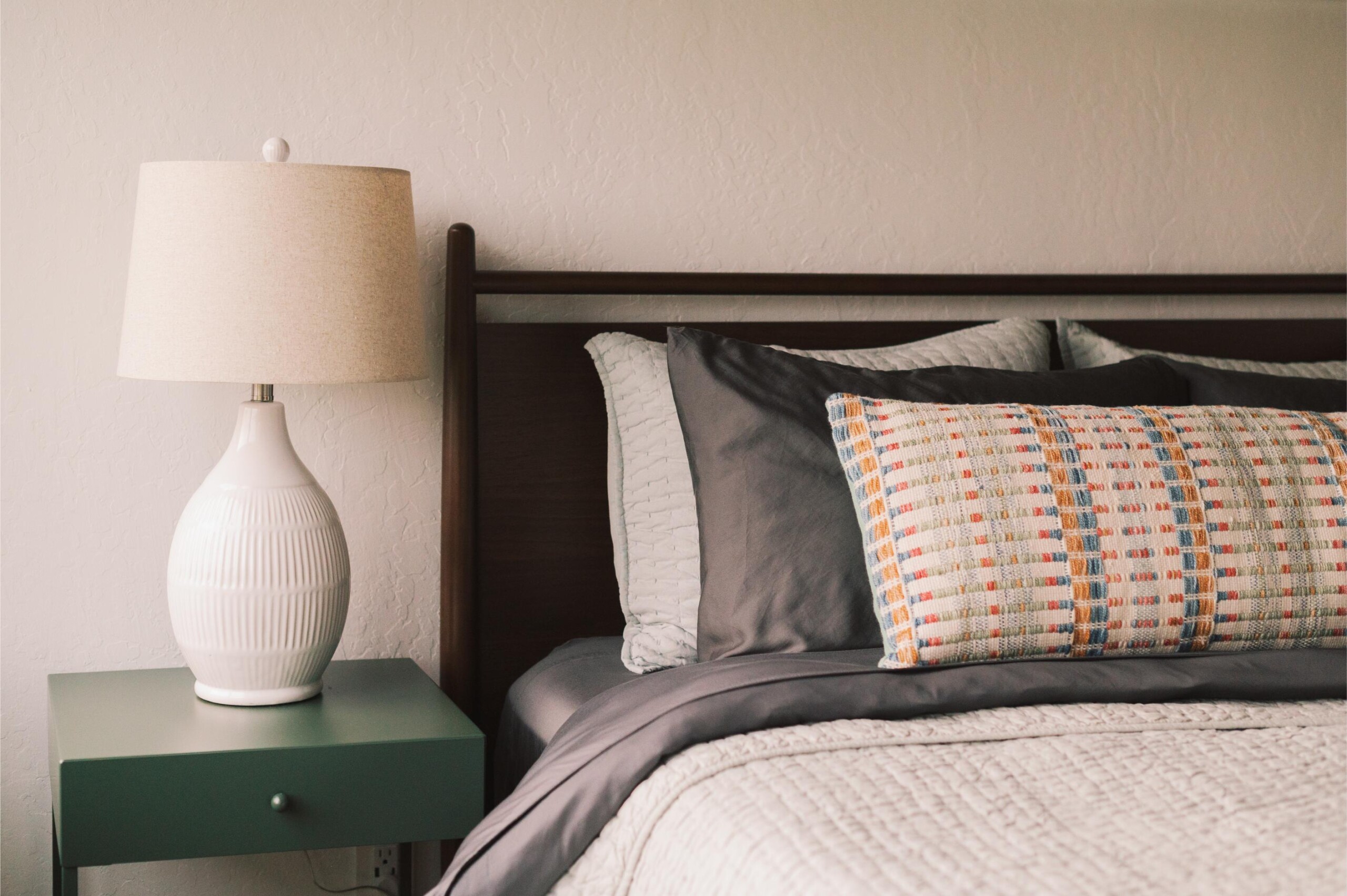 The guest bedroom includes a Queen Casper mattress, soft bamboo sheets, and a calm, coastal-inspired design — perfect for friends or family members.