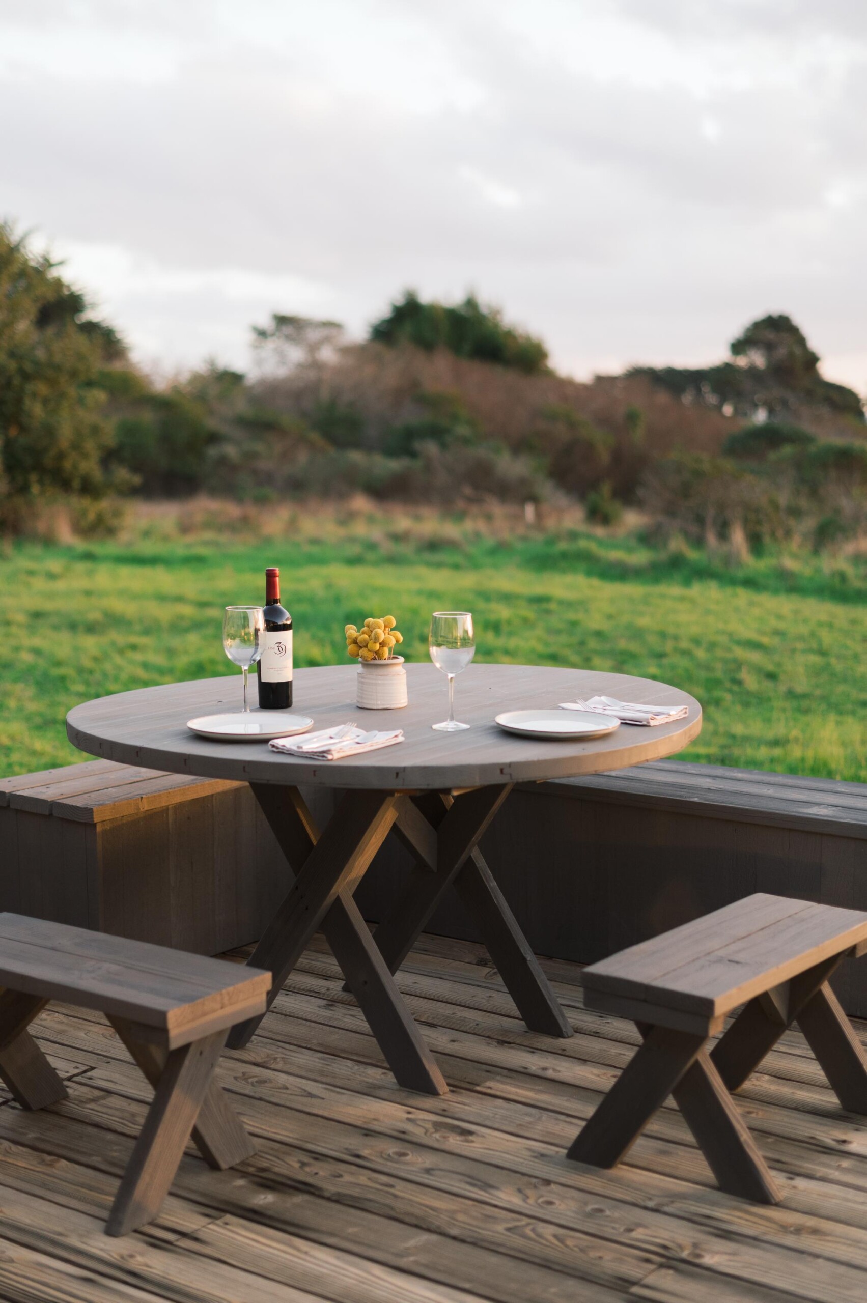 The back deck is the heart of the home. Enjoy outdoor dining for six, lounge seating, a gas fire pit, and a private hot tub — all overlooking the Pacific Ocean. It’s the perfect place for morning coffee, sunset cocktails, and stargazing at night.